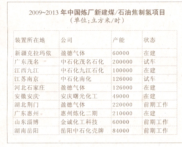 目前,煉廠主要采用天然氣或石腦油原料制氫,但隨著石油、天然氣價格的不斷上漲以及成品油升級和煉油原料高硫劣質化,氫氣需求也在增加。一般情況下,一個配置渣油加氫的千萬噸級加工能力煉廠的平均用氫量大致是原油加工量的1.0%,氫資源已成為煉廠主要的原料。煉廠通過自身和傳統的加工方式已難以解決企業的氫氣平衡和需求,煉廠采用輕質原料制氫也越來越難以具有經濟性。在此背景下,采用煤作為原料制氫不僅在技術上可行,同時在經濟性上也表現出越來越強的優勢。