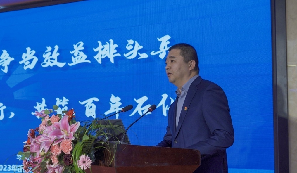 新欣園公司總經理王政,華鑫洺源公司總經理王猛,華辰石油公司總經理蔣富強,貸款公司總經理王雪雁作為下屬單位總經理代表依次上臺,作2023年度工作匯報。